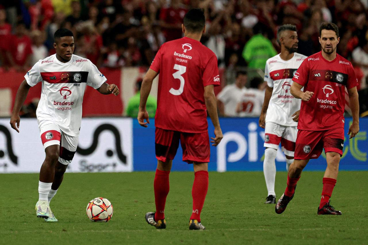 También a estrellas actuales como el uruguayo Giorgian De Arrascaeta, el centrocampista Everton Ribeiro, y a la joven revelación brasileña Endrick, quien hizo su primer gol en el Maracaná para el equipo de las estrellas de camiseta blanca.