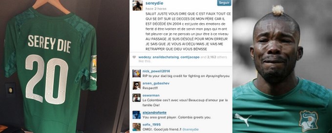 • El jugador de Costa de Marfil, Serey Die desmintió en las redes sociales la muerte de su padre, el jugador explicó que se conmovió hasta las lágrimas durante el himno de su país antes del partido contra Colombia.