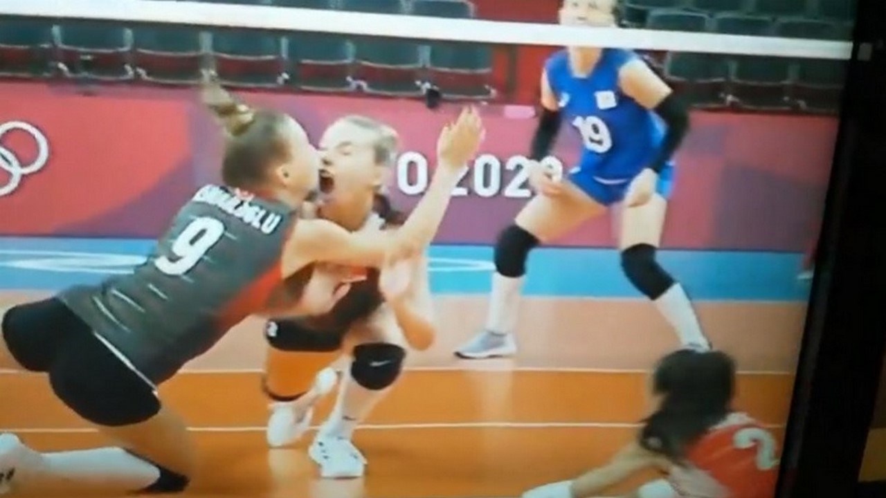 Durante el enfrentamiento entre el equipo de vóley de Turquía con Rusia, dos jugadoras sufrieron un choque accidental que dejó a una de ellas con dos dientes menos. La atleta que se hizo viral por perder los dientes en pleno partido de Tokyo 2020.