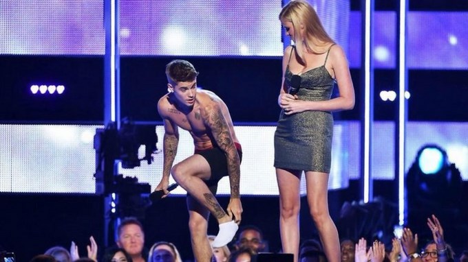 El polémico cantante canadiense Justin Bieber se desnudó ante miles de fanáticas en el Fashion Rocks 2014, Bieber no dudó en quitarse el pantalón para enloquecer a sus seguidoras.