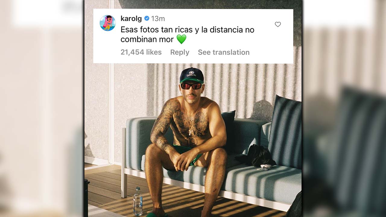 El cantante Ferxxo publicó una fotografía mientras se encuentra en Europa en donde realiza presentaciones. A lo que la cantante Karol G, le comentó: “Esas fotos tan ricas y la distancia no combina mor”.