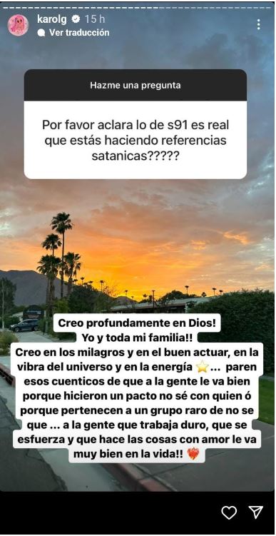 A lo que Karol G respondió que es creyente de Dios, y que su canción no es un mensaje subliminal.