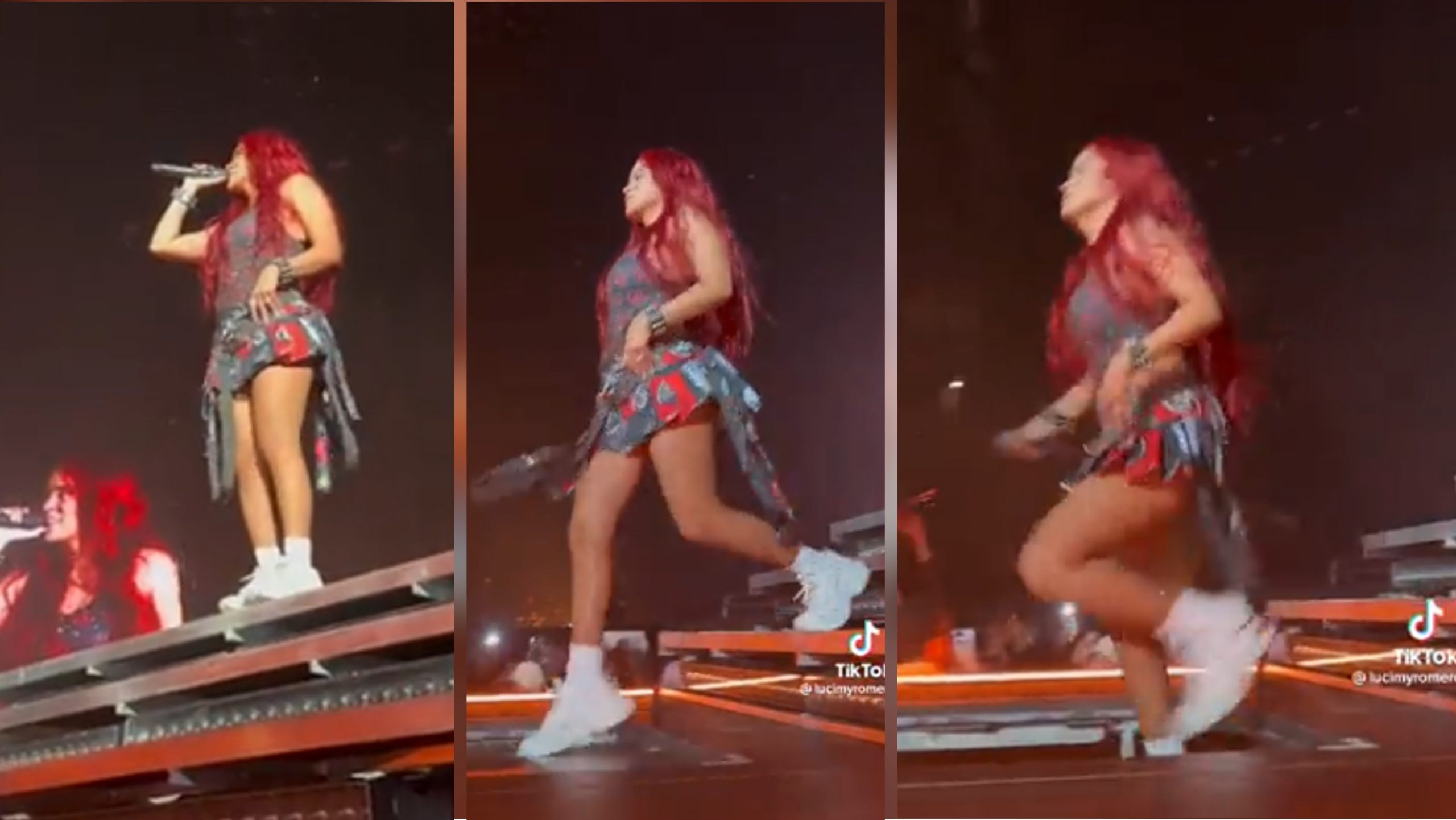 Minuto30.com .- Karol G volvió a protagonizar un pequeño “accidente casero” al bajar por las escaleras de un escenario de Miami. La paisa por poco y va a dar al piso.