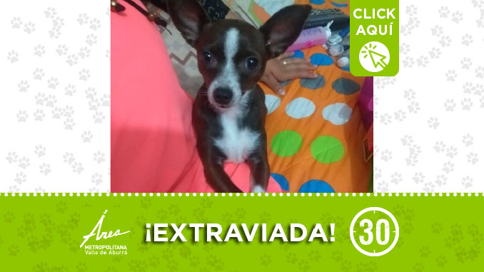 Esta perrita que obedece al nombre de ‘Katty’ se perdió en el barrio Barichara de San Antonio de Prado. Si la ha visto o sabe de su paradero, por fa comuníquese al 311 261 29 74