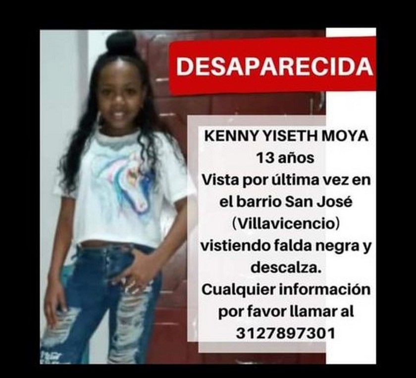 Desesperada se encuentra la familia de Kenny Yiseth Moya, una niña de tan solo 13 años de edad que fue reportada como desaparecida en la ciudad de Villavicencio. La última vez que fue vista salió de su casa en el barrio San José de esta ciudad. La niña vestía una falfa de color negro y […]