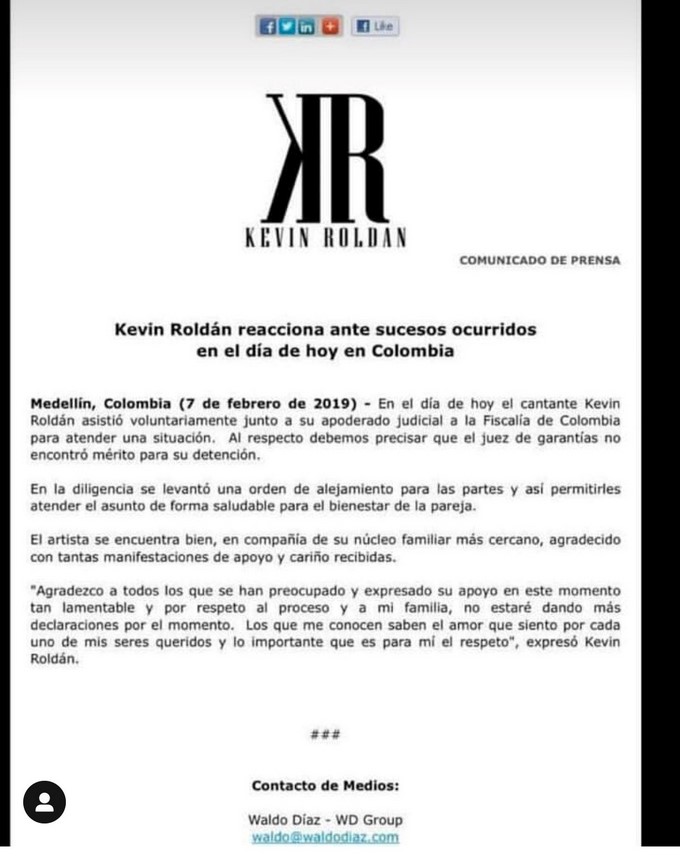 Tras esto, su mánager lanzó un comunicado oficial revelando resumidamente lo que había sucedido y citando palabras de Kevin, quien afirma que no dará más declaraciones respecto a lo sucedido, y que ama y respeta a sus seres queridos.