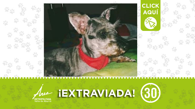 Kiara es una schnauzer de 13 años que desapareció en el barrio Caicedo, Villatina, el pasado primero de febrero.