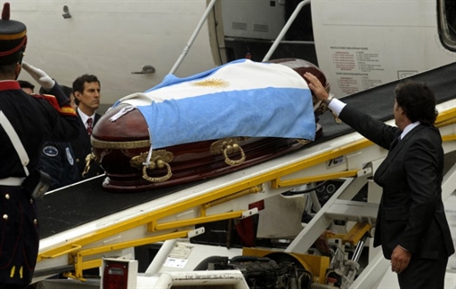 El féretro fue transportado en avión hasta Río Gallegos, capital de la provincia de Santa Cruz, en cuyo aeropuerto esperaba a la comitiva el presidente de Venezuela, Hugo Chávez, quien iba a acompañar a la familia al funeral en un cementerio comunal.