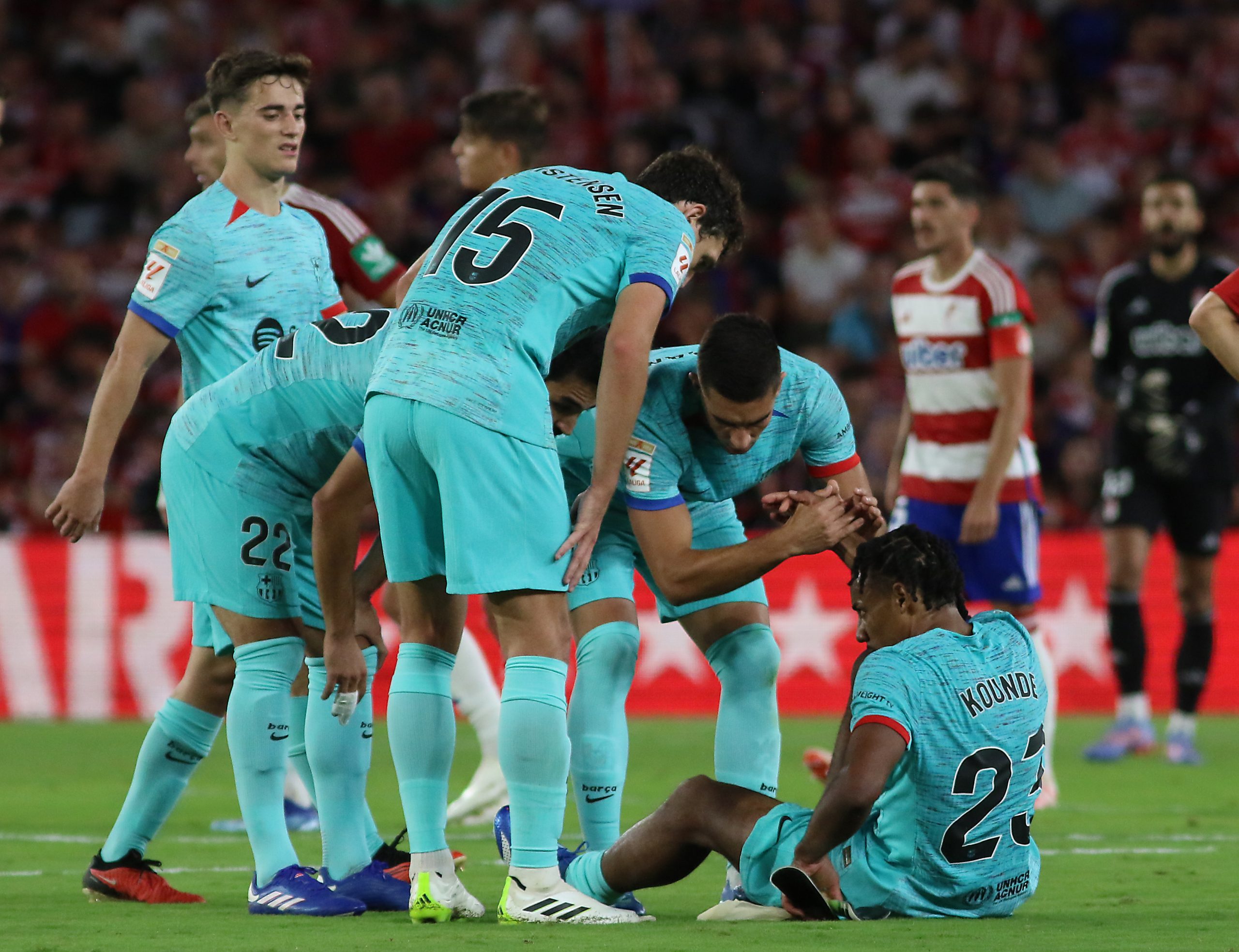 Con Kounde ya son cinco los jugadores que están de baja en el equipo de Xavi Hernández, aunque se espera la próxima recuperación de Pedri González, que está de baja desde finales de agosto por una lesión en el recto anterior.