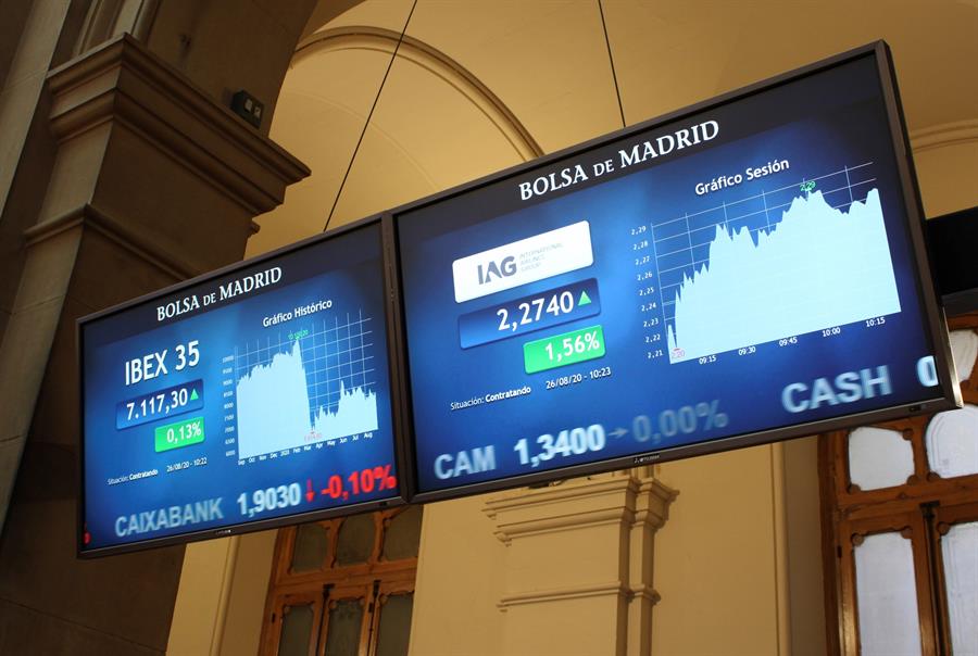 El principal indicador del mercado nacional, el IBEX 35, ha subido 14,6 puntos, el 0,21 %, hasta los 7.123 puntos. Las pérdidas acumuladas en este ejercicio descienden al 25,41 %