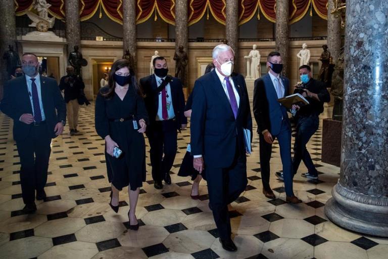 El líder de la mayoría demócrata en la Cámara de Representantes, Steny Hoyer, llega al Capitolio en Washington (EE.UU.), hoy 13 de enero de 2021. EFE/Shawn Thew