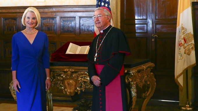 La embajadora estadounidense en el Vaticano, Callista L. Gringrich (i), posa junto al arzobispo Jean-Luis Brugues/EFE