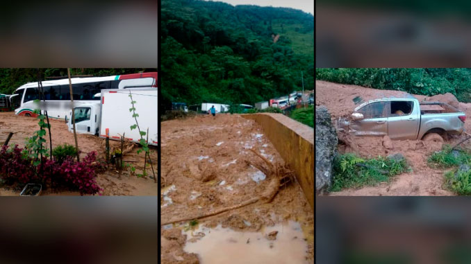 Como se observa en las imágenes que han sido compartidas, hay vehículos particulares y de servicio público atrapados en el lodo. Además, se observa cómo algunos ciudadanos intentan cruzar caminando.