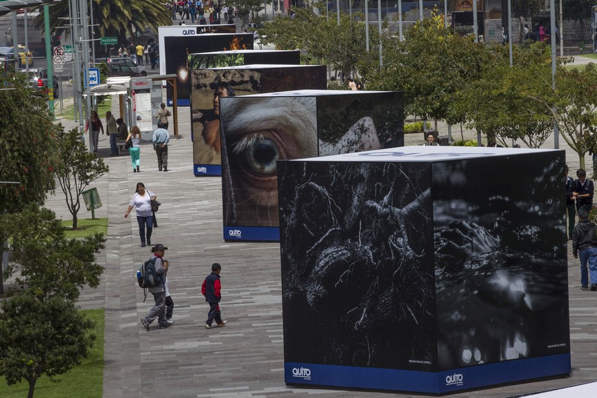 Fotografía del 6 de abril del 2015 de la exposición “FotoQuito: Paisajes Interiores” en un bulevar en Quito (Ecuador). EFE