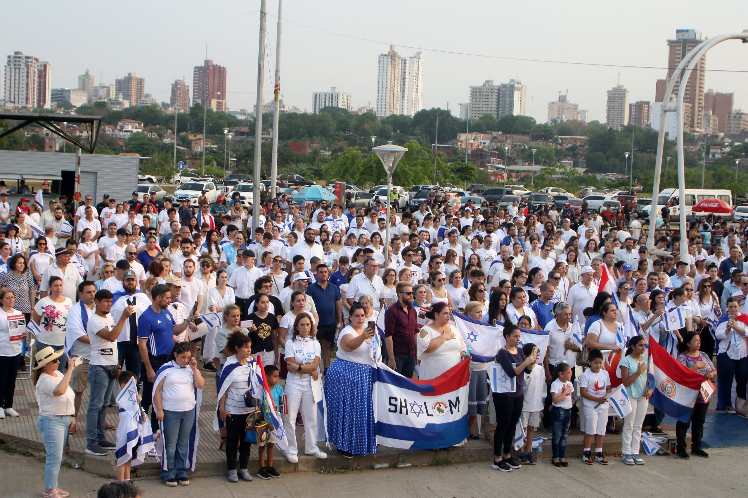Integrantes y simpatizantes de la comunidad judía se sumaron en la tarde de este domingo a la concentración "Con Israel y contra el terrorismo", que tuvo lugar en la Costanera de Asunción, a orillas del río Paraguay.