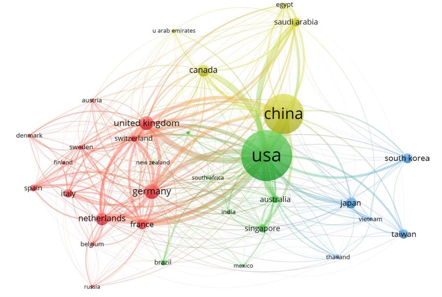 Les siguen todos los países europeos, especialmente el Reino Unido, Alemania, los Países Bajos, Francia y España, y la investigación destaca también el papel de liderazgo de Arabia Saudí, Canadá y Corea del Sur, con un número significativo de documentos presentados.