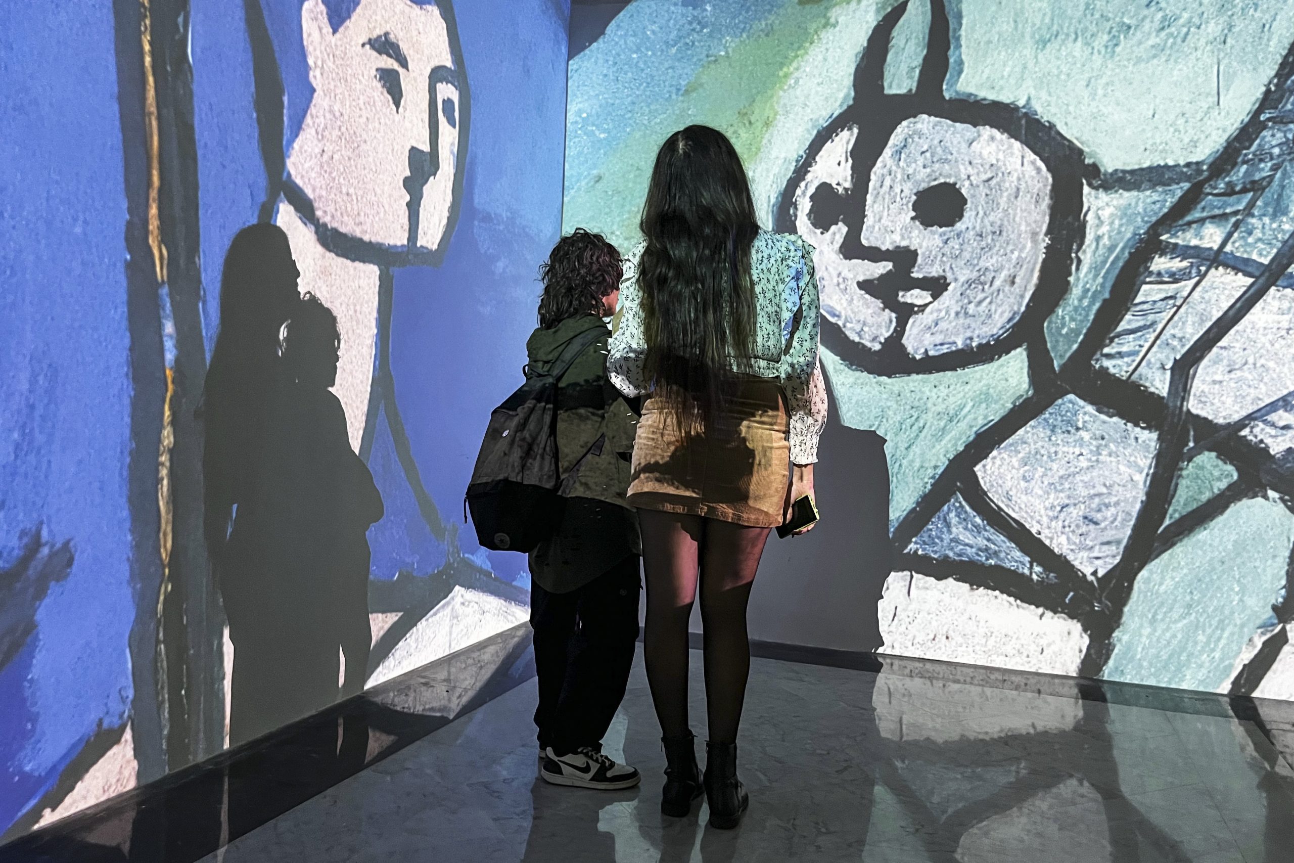 La otra cara de "Pasión Picasso", la más tecnológica propone un viaje en Realidad Virtual por sus cuadros más memorables y un pasillo repleto de proyecciones, que se cuelan entre los históricos frescos benedictinos de los muros de este archivo de época napoleónica en el corazón de Nápoles.