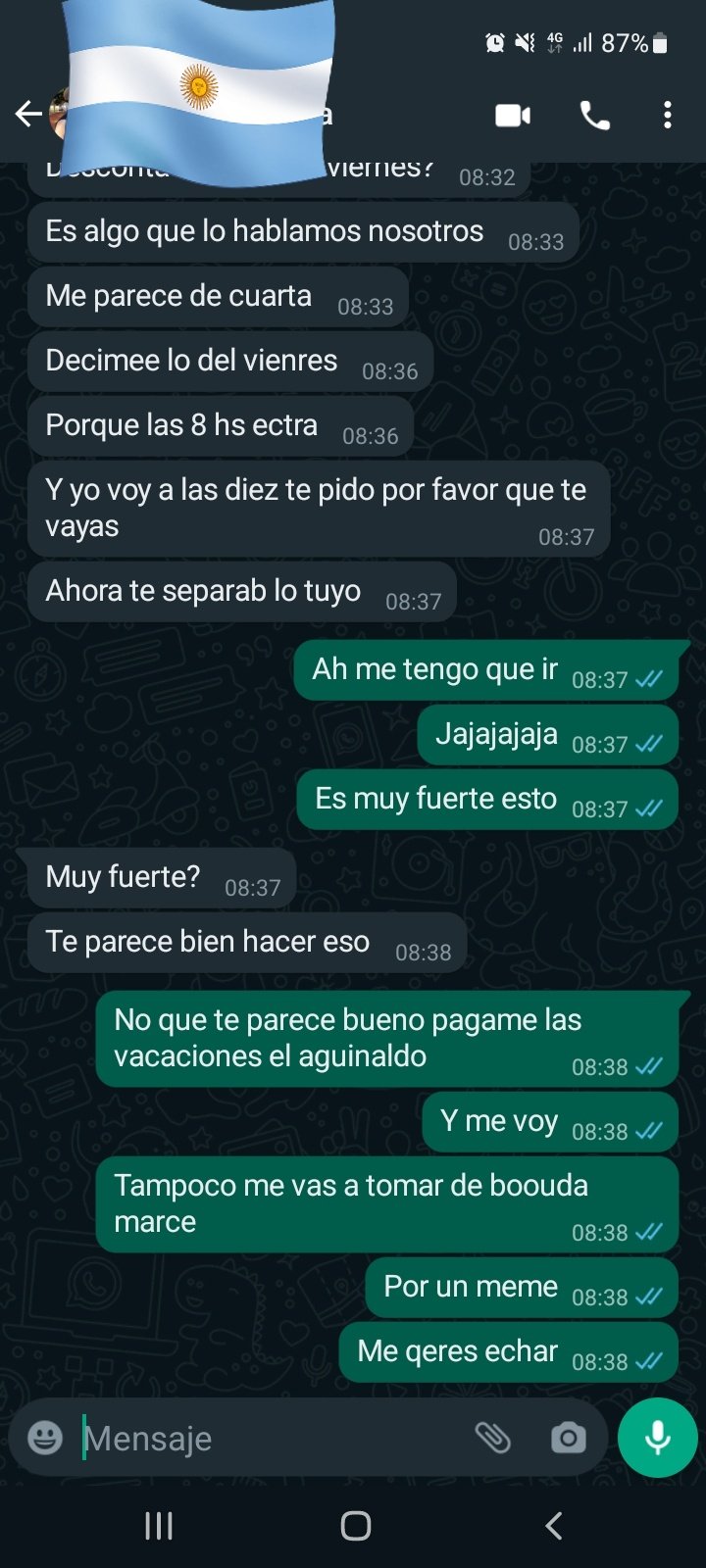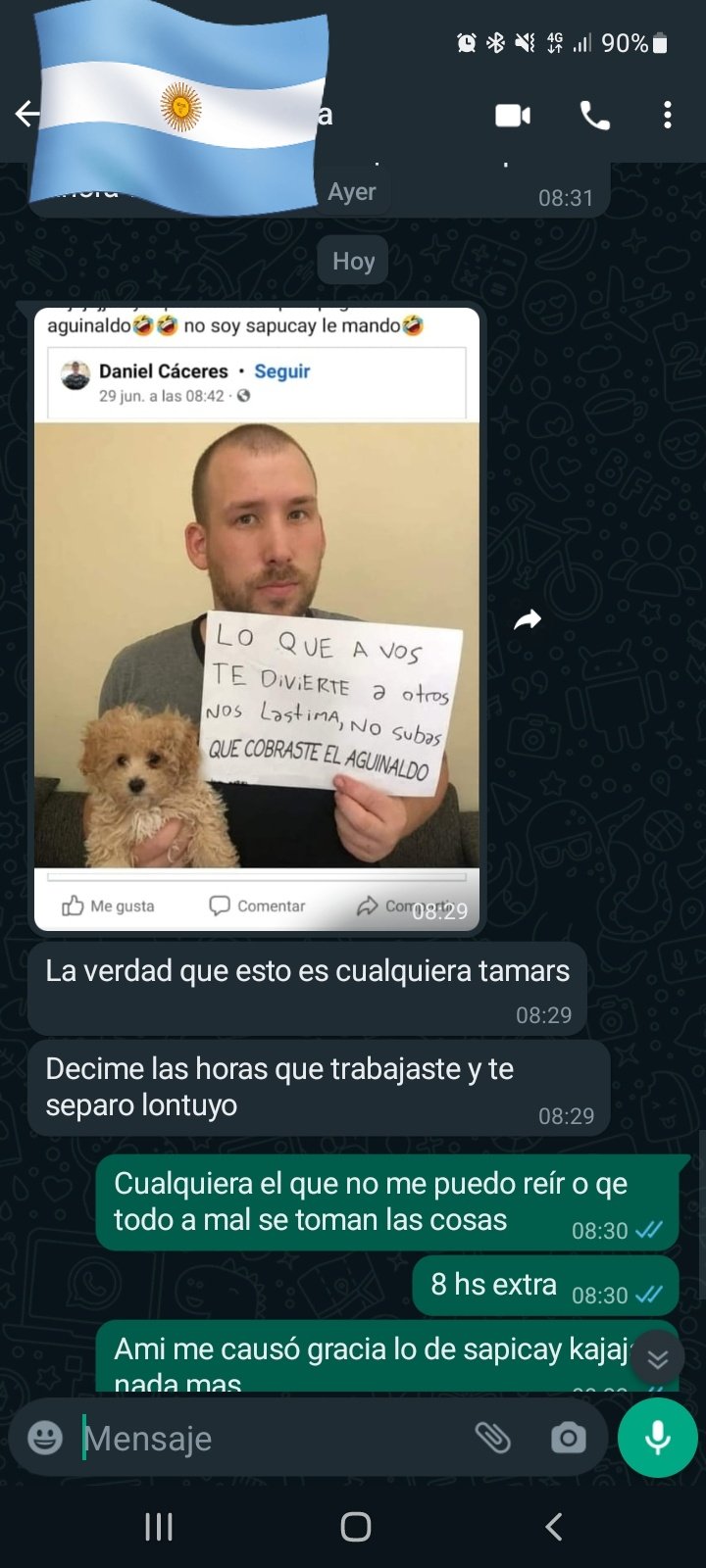 La chica llamada Tamara, contó que llevaba varios años desempeñando varias actividades en la panadería, sin embargo, fue despedida cuando su jefe le reclamó por un meme en su muro, cosa que quedó registrada en los chats que hizo públicos.