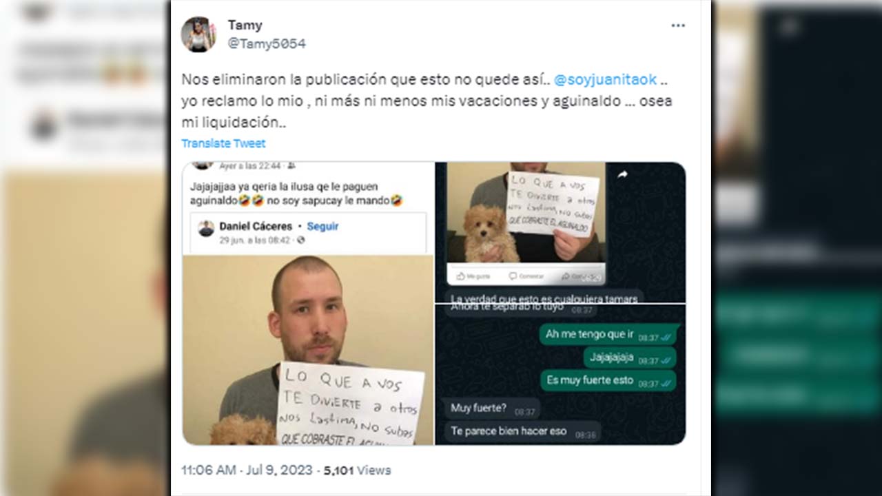 “Acércate al ministerio de Trabajo o algún abogado de confianza y que alguien le avise a Marcelo que la registración y el aguinaldo no se negocia”. “Qué vergüenza Tamara, confía en que algo mejor te está por llegar”, comentaron algunos.