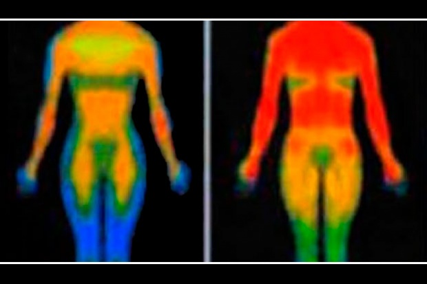 La imagen muestra en azul la fuerza vital de la persona gradualmente dejando el cuerpo. Según Korotkov, el ombligo y la cabeza son las partes que primero pierden su fuerza vital (lo que sería el alma) y la entrepierna y el corazón las últimas zonas donde permanece el espíritu antes de navegar por la fantasmagoría del infinito, según pública tvnotas.com.mx.