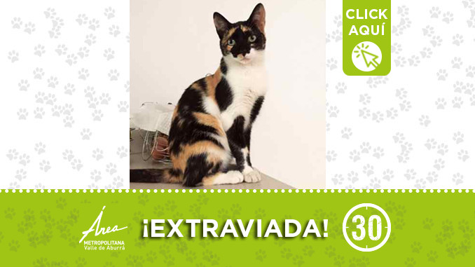 Esta gatica se perdió cerca del colegio Salvatorianos en La Estrella. Si usted la ha visto por favor llamar al 3002325939. ¡Difunde!