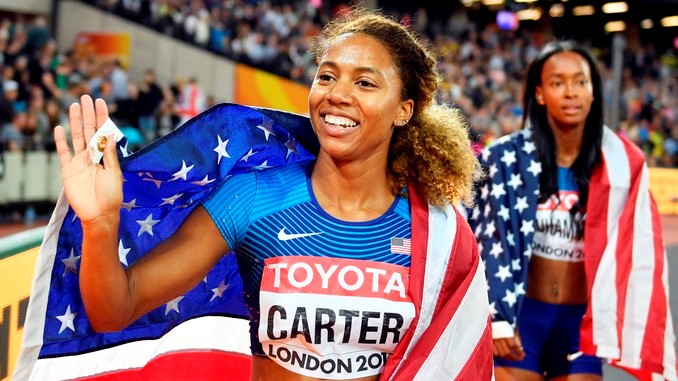 Carter, estudiante de biología en la Universidad de Stanford, llegó emparejada con su compatriota Dalilah Muhammad al décimo y último obstáculo, pero fue mucho más rápida en el tramo liso hasta la meta.