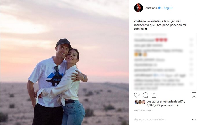 Minuto30.com .- El astro del futbol mundial Cristiano Ronaldo ha usado su cuenta de Instagram para felicitar a Georgina en su día. Sus 153 millones de seguidores han sido testigos además de la hermosa declaración de amor hecho por el portugués a su pareja.