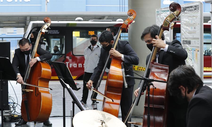 La Orquesta Filarmónica de Bogotá (OFB) llevó este viernes su música a una estación de Transmilenio, el sistema masivo de autobuses de transporte público de la capital colombiana, con el objetivo de promover el autocuidado y la cultura ciudadana para evitar la propagación de la COVID-19.