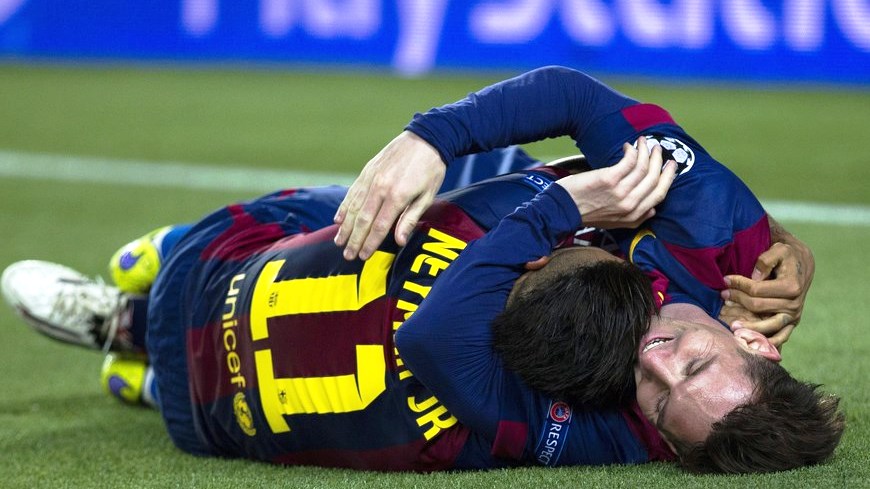 Neymar Da Silva (i) celebra con Leo Messi una anotación. EFE