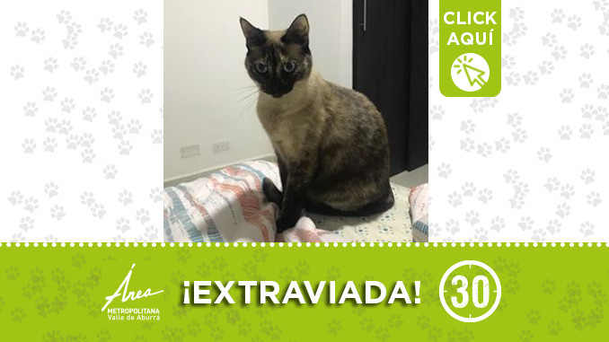 Esta gatica se perdió por el parque de Sabaneta desde el 8 de marzo. Si usted la ha visto por favor llamar a los números 3108947779 – 3003941229. ¡Difunde!