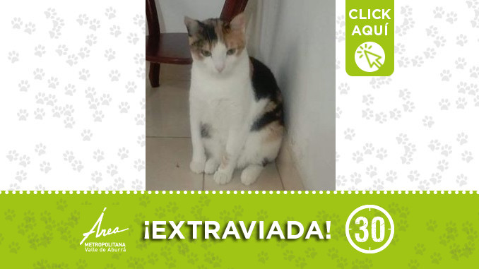 Esta gatica se perdió por el barrio El Tablazo de Itagüí. Si usted la ha visto por favor llamar al: 3711512 – 3043833391. ¡Difunde!