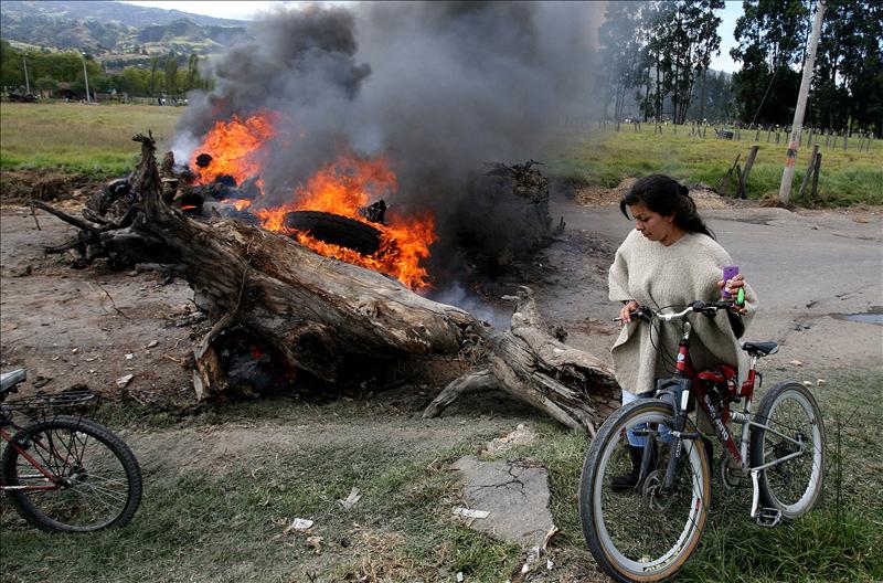 Los cortes en las vías mantienen aisladas a numerosas poblaciones de siete departamentos y en algunas de ellas, principalmente de Boyacá (centro), donde han sido más intensas las protestas, escasean alimentos y otros bienes de primera necesidad, según las autoridades.