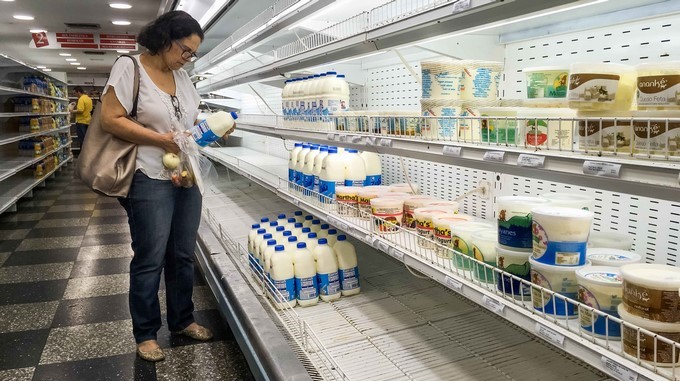 CAR07. CARACAS (VENEZUELA), 12/09/2018.- Una mujer busca productor en un supermercado hoy, miércoles 12 de septiembre del 2018, en Caracas (Venezuela). La actividad económica venezolana se contrajo 50,61 % desde que el presidente, Nicolás Maduro, asumió el cargo en 2013, según informó hoy la Comisión de Finanzas de la Asamblea Nacional (AN, Parlamento) que controla la oposición. EFE/MIGUEL GUTIÉRREZ