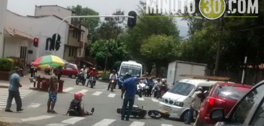 Un leve trancón se presentó en el lugar, debido a que los vehículos y el motociclista quedaron atravesados en ese cruce vial.