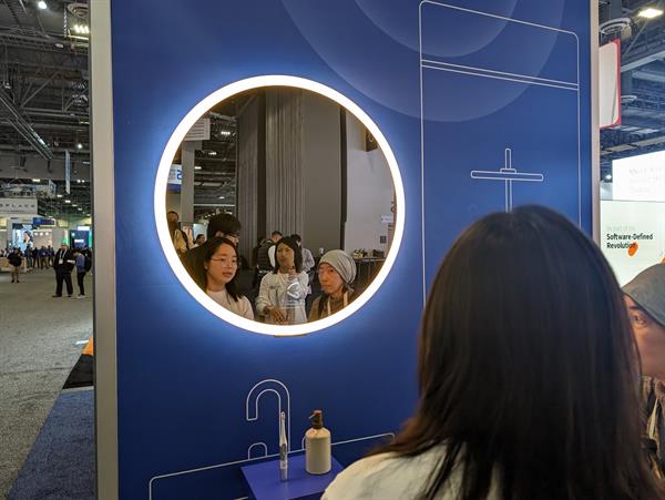 La IA generativa también busca abrirse camino en el cuarto de baño: Baracoda expuso en la feria las últimas actualizaciones de su espejo inteligente que usa esta tecnología para aumentar la confianza de los usuarios en sí mismos y su estado de ánimo con mensajes positivos y meditaciones.