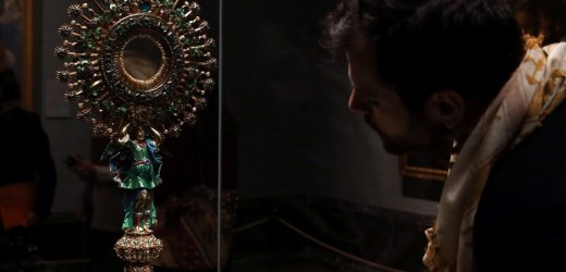 La custodia de la Iglesia de San Ignacio de Bogotá, conocida como “La Lechuga” por el verde de sus 1.485 esmeraldas, ha abandonado por primera vez Colombia para exhibirse en el Museo del Prado coincidiendo con la visita de Estado del presidente, Juan Manuel Santos.