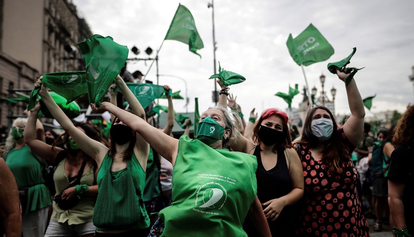 Durante una sesión parlamentaria de 20 horas ininterrumpidas y con multitud de personas, tanto a favor (marea verde) como en contra (celestes), manifestándose a las puertas del Congreso, quedaron patentes las diferencias que el tema genera en la sociedad y dentro de los partidos, tanto oficialistas como opositores, aunque de antemano se preveía que, como ya ocurrió en 2018, el “sí” acabaría imponiéndose.