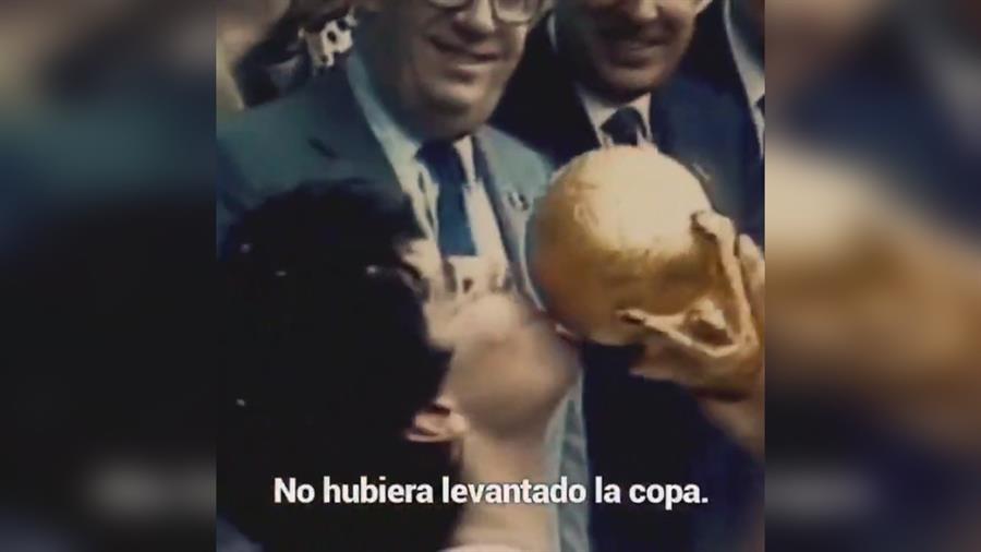 “Nadie sale campeón solo. Ni (Diego) Maradona en el ’86, que sin ese gol de ‘Burru’ (Jorge Burruchaga) en la final no hubiera levantado la Copa, ¿o no?”, comienza el vídeo que mezcla imágenes de partidos con otras de enfermeros y médicos.