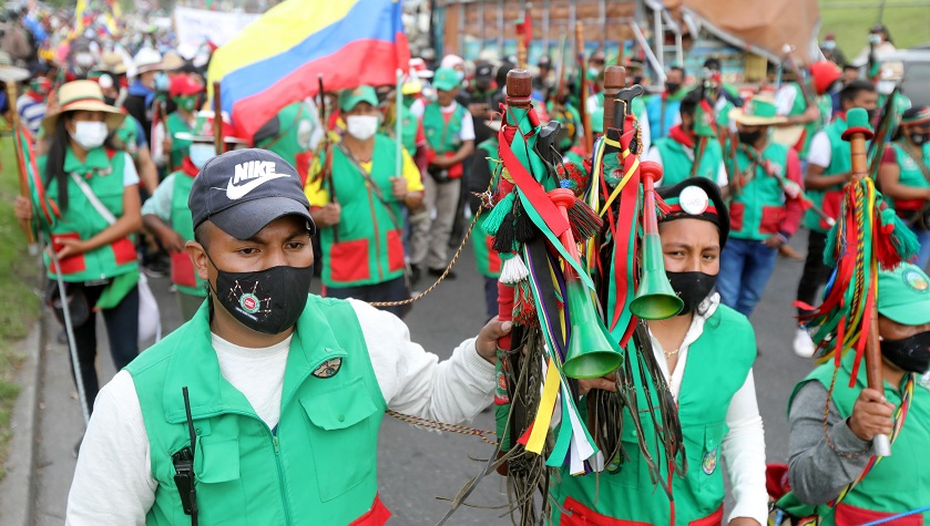 Protegidos por su guardia ancestral miles de indígenas del suroeste del país se tomaron este lunes las calles de Bogotá, en dirección a la céntrica Plaza de Bolívar, en donde se concentrarán para exigir al presidente colombiano, Iván Duque, respuesta a sus demandas y que se reúna con ellos.