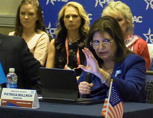 Durante una intervención en la sesión inaugural de la CPAC, frente a líderes de la ultraderecha tanto de EE.UU. como de Asia y Europa, Bullrich pidió ayuda a la comunidad internacional para empezar un "cambio" político en Latinoamérica.