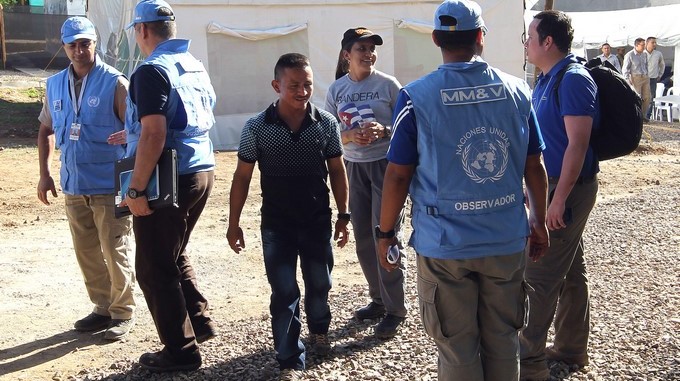 “Hoy salieron de nuestra sede en Bogotá los últimos camiones a las Zonas Veredales con kits básicos para que los observadores puedan dormir en el campamento temporal de las FARC y allí puedan monitorear las armas recibidas 24 horas por día”, afirmó el teniente coronel Roberto Ceretti, coordinador de dejación de armas de la ONU.