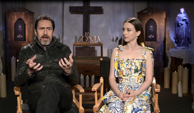 El actor mexicano Demián Bichir (i) y la actriz Taissa Farmiga, “La Monja”