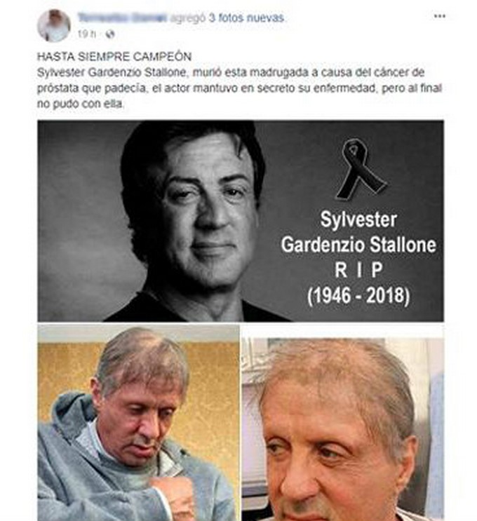 Una fotografía de la supuesta muerte del actor de Hollywood, Sylvester Stallone, se hizo viral en las redes sociales.