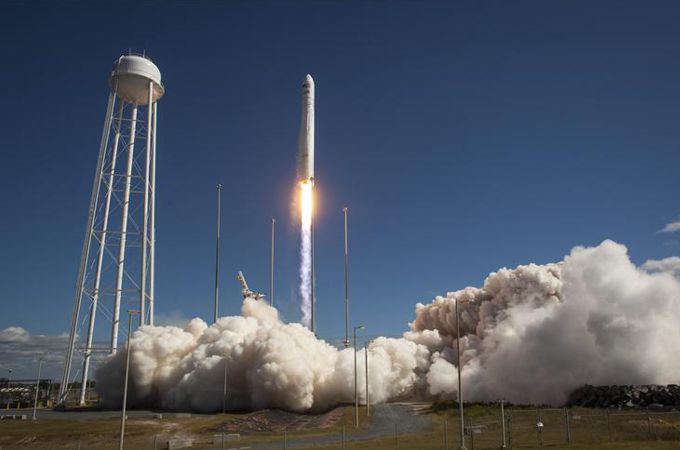 despegue del cohete Antares de la Corporación Ciencias Orbitales, con la nave de carga Cygnus.  EFE