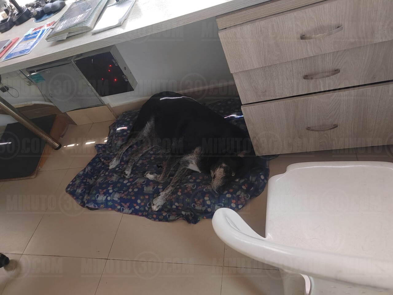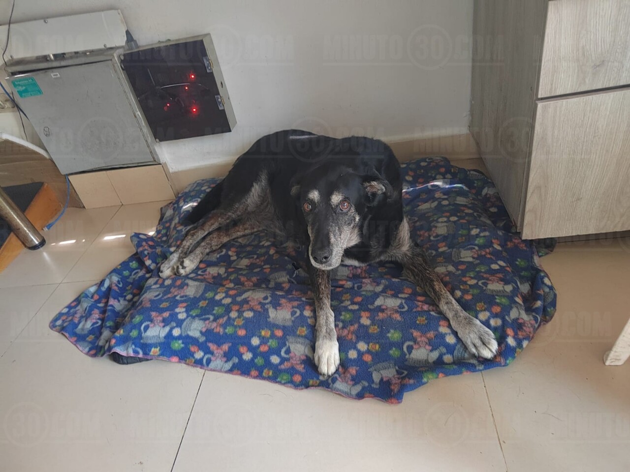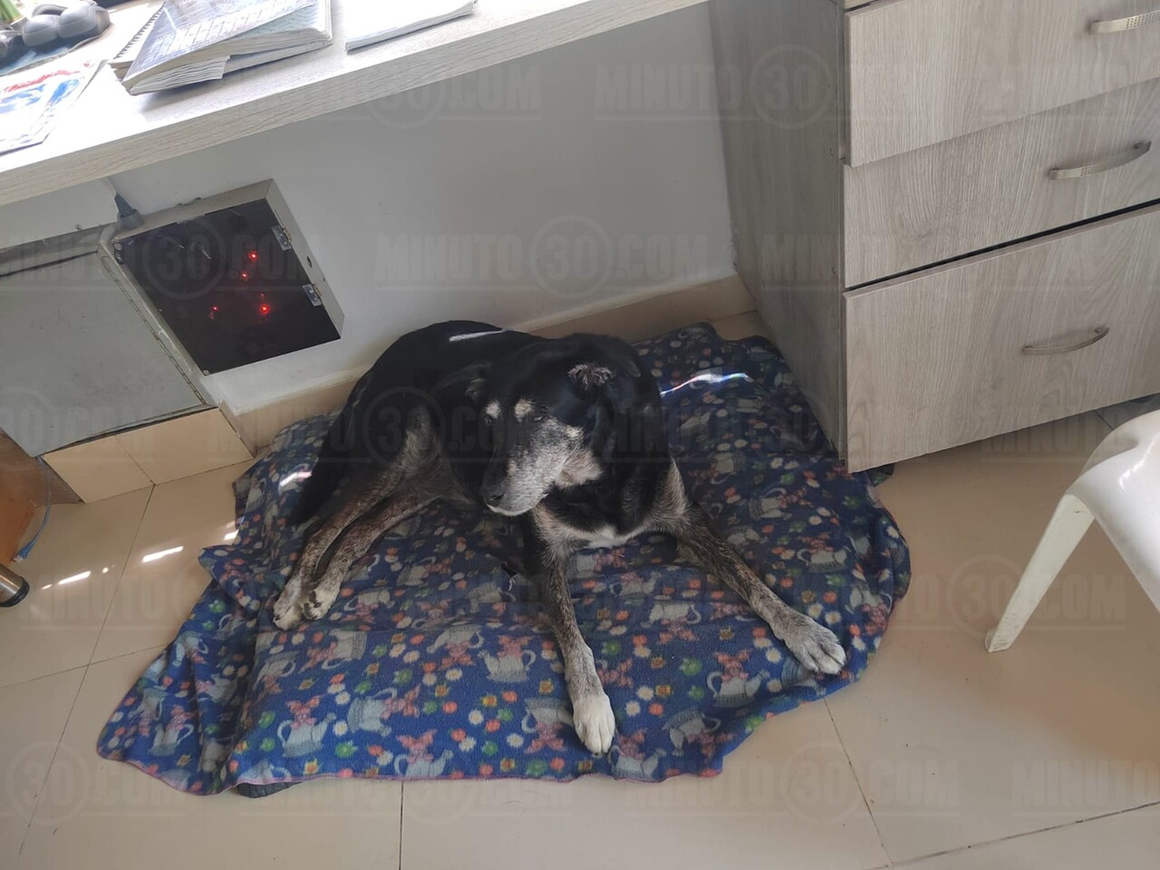 La negra descansa en la caseta de los vigilantes, acompañándolos en su labor. Foto: Minuto30.com