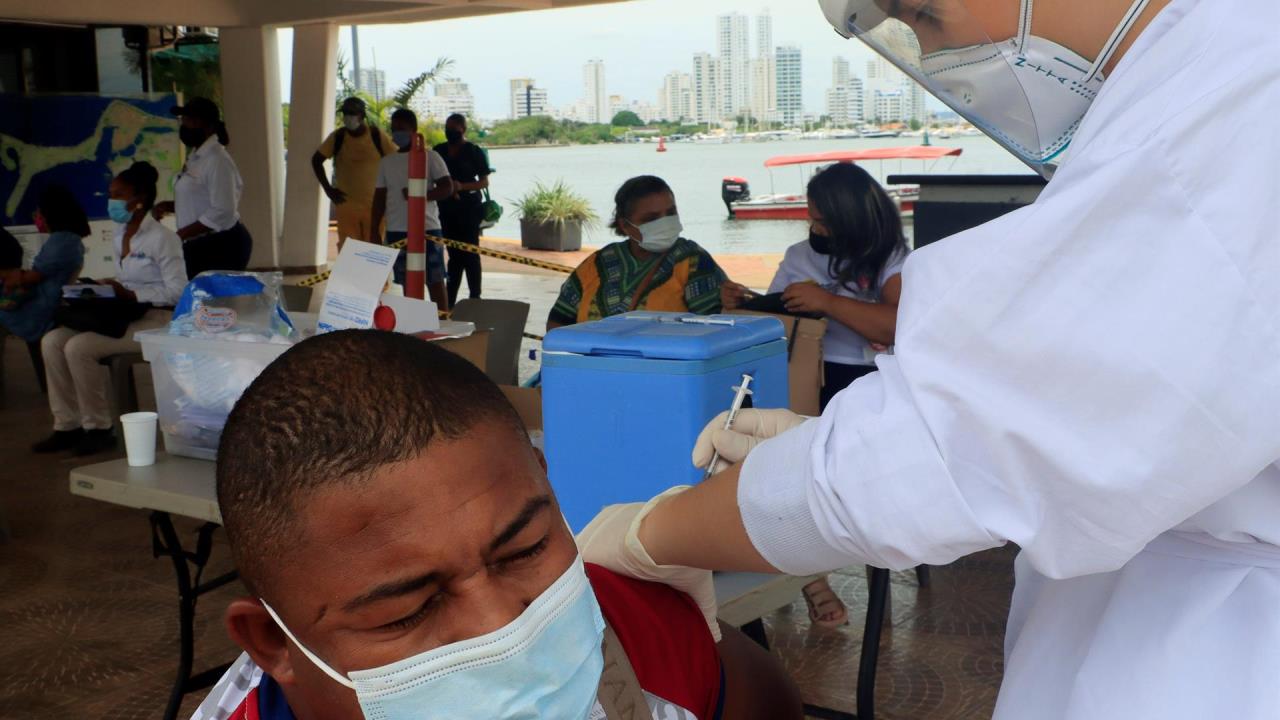 Un hombre recibe una dosis de la vacuna contra la covid-19 hoy, en Cartagena (Colombia). EFE/ Ricardo Maldonado Rozo/Archivo