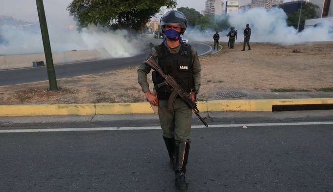 Las fuerzas de seguridad de Venezuela leales al Gobierno de Nicolás Maduro están lanzando bombas lacrimógenas contra Guaidó y los militares que lo acompañan, según testigos.