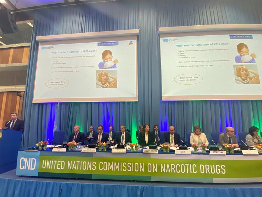 Reunión de la Comisión de Estupefacientes -el órgano ejecutivo de la ONU en materia de drogas-, que el pasado mes de marzo decidió aplazar hasta diciembre la votación sobre el uso terapéutico del cannabis.EFE/ Luis Lidón