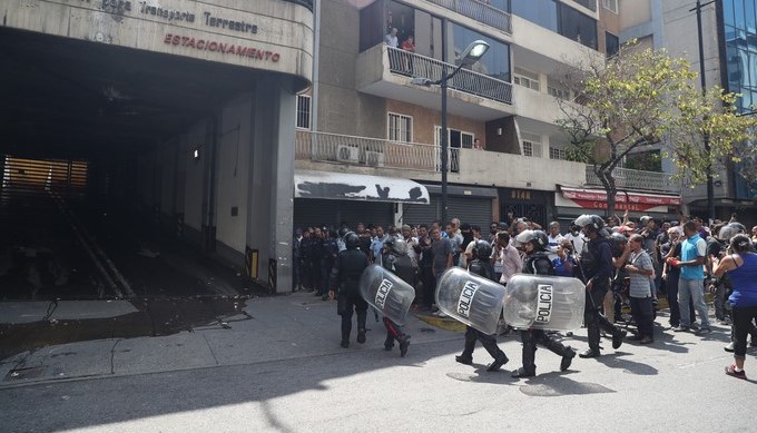 La policía municipal y estatal han intentado hacer frente a los colectivos que han disparado en la zona y que se han reunido dentro del estacionamiento de la sede del Ministerio de Transporte Terrestre.