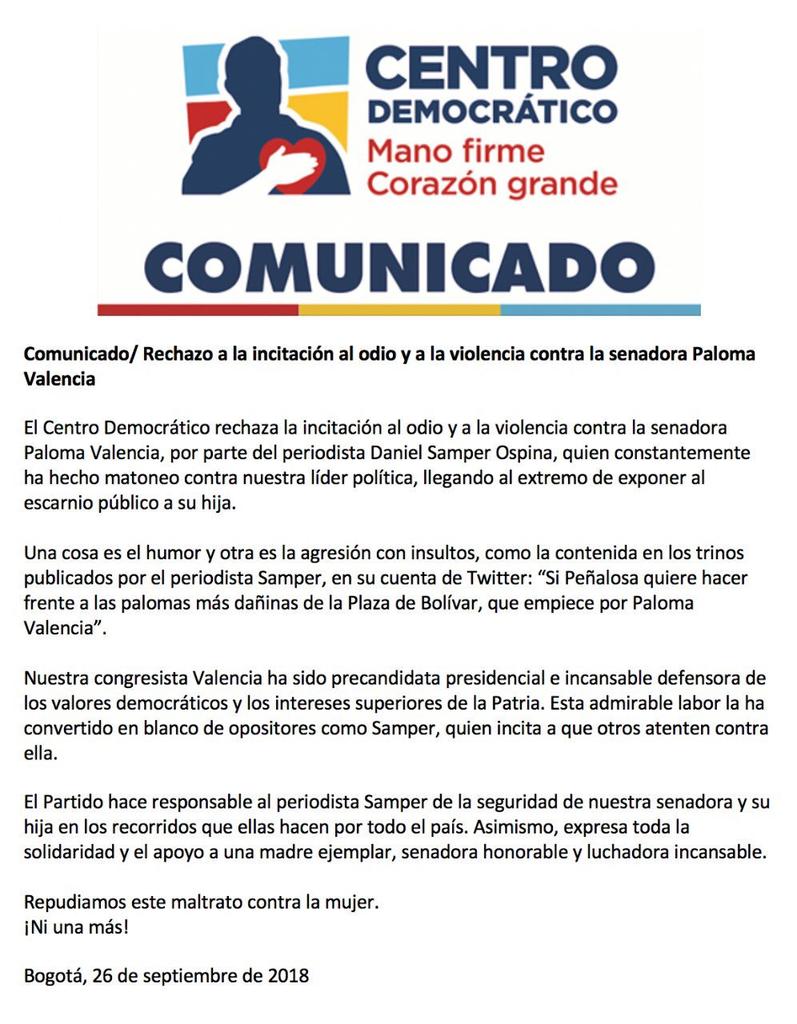 Un trino del periodista Daniel Samper refiriéndose a las declaraciones del alcalde de Bogotá Enrique Peñalosa sobre la disminución de palomas en el centro de Bogotá y en clara alusión a la senadora Paloma Valencia, lo tiene nuevamente en centro de críticas. Desde el partido en el que milita Valencia donde se le acusó de […]